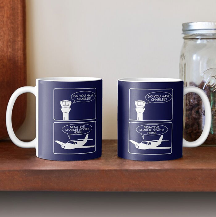 These classic ceramic mugs hold 11 oz. (325 ml). Mug diameter is 3.2″ (8.2 cm), not including handle. Dishwasher-safe. Aviation Humour Coffee Mugs are designed by True Challenge.